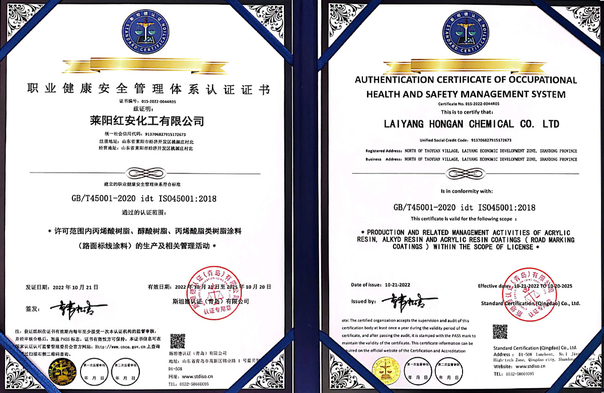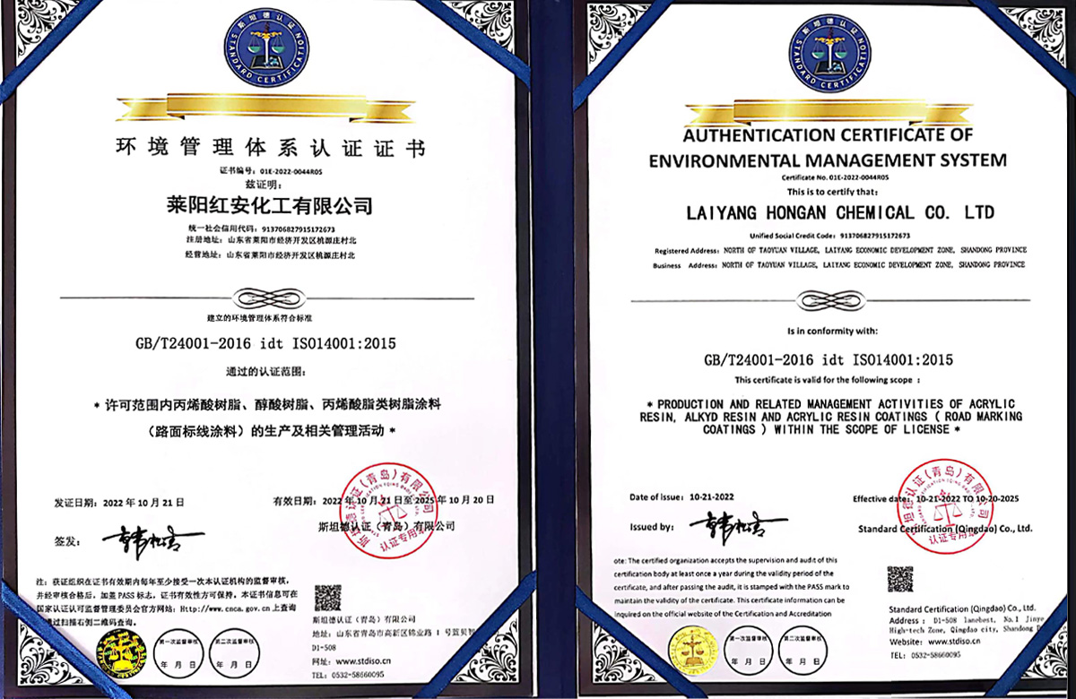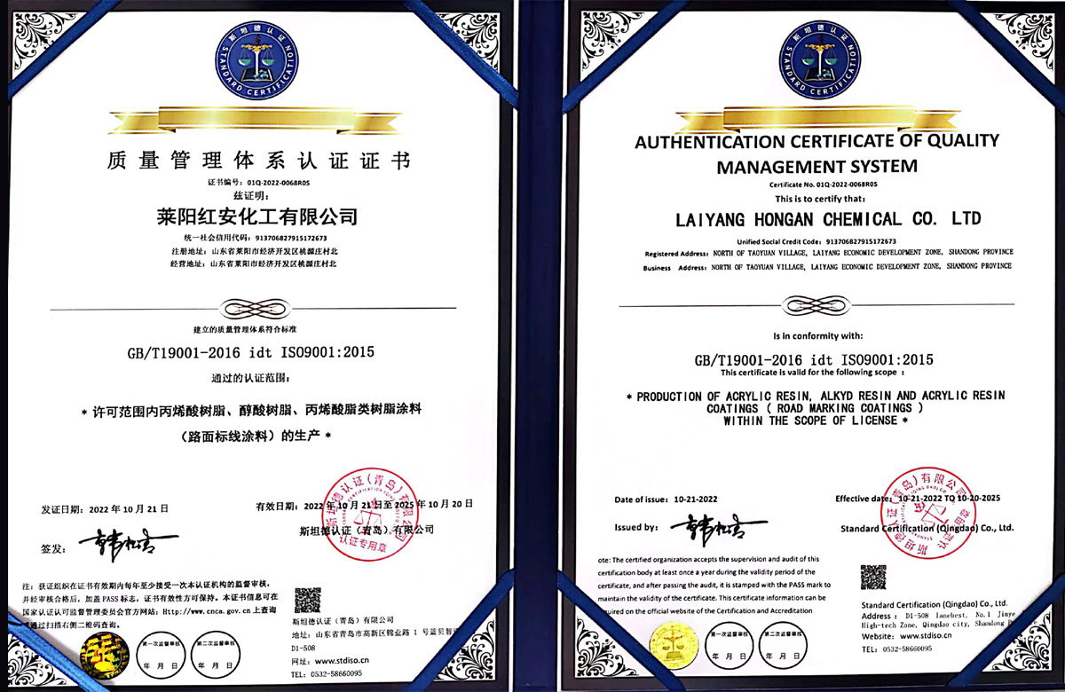 紅安化工經過近二十年的打造和積淀,現已建成了一家專業研制生產涂料合成樹脂的綜合型工廠,位于山東省半島的腹地--萊陽市。公司已通過了三體系認證,即ISO9000質量管理體系認證和環(huán)境、職業健康安全管理體系認證,并獲得了六項國家發(fā)明專利,八項實用新型專利;19年榮獲山東省高新企業稱號,22年通過了復審;22年榮獲山東省瞪羚企業稱謂,還有其他一些榮譽稱號不再一一敘說。 公司現有樹脂合成反應釜29套,各類樹脂年生產能力約8萬噸,具有完善的檢測儀器和應用服務條件。